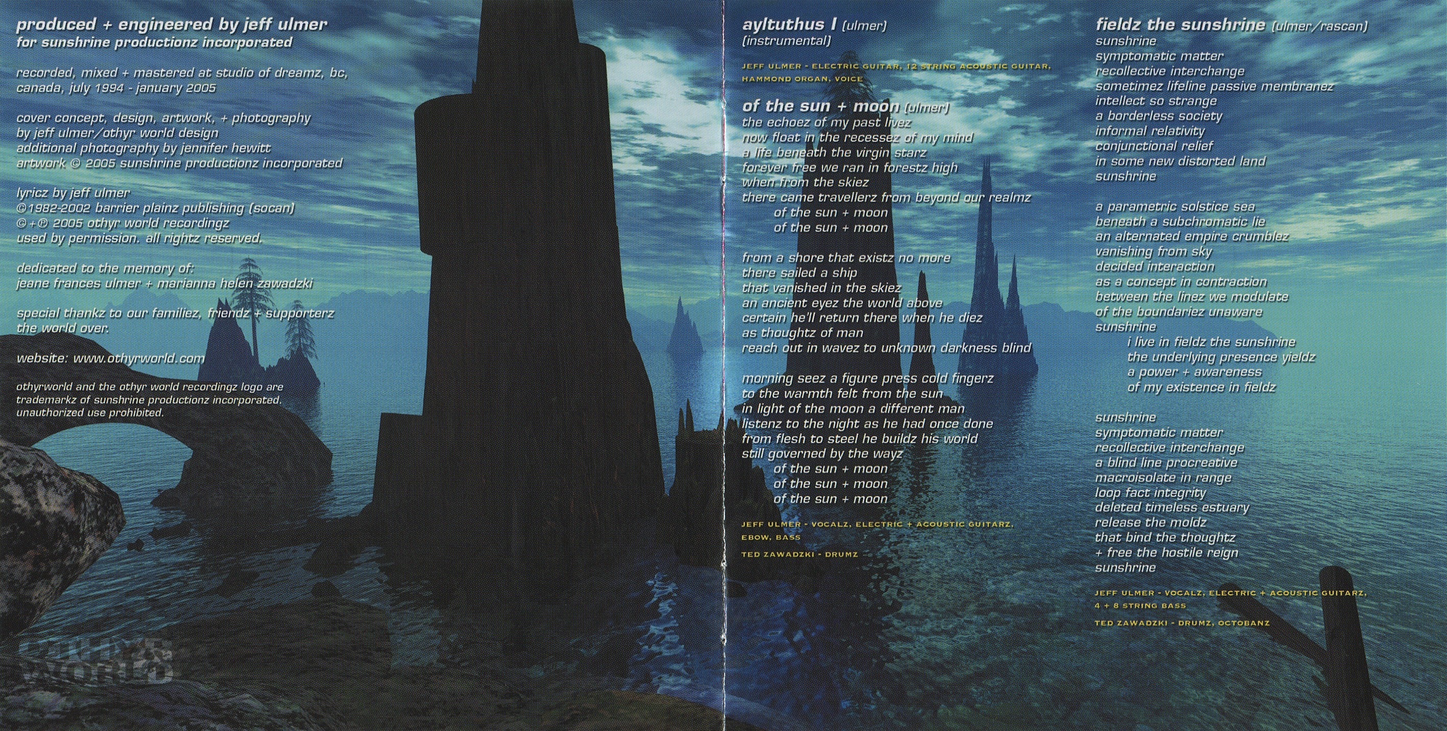 Jeff Ulmer: vocalz, electric + acoustic guitarz, Ebow, bass