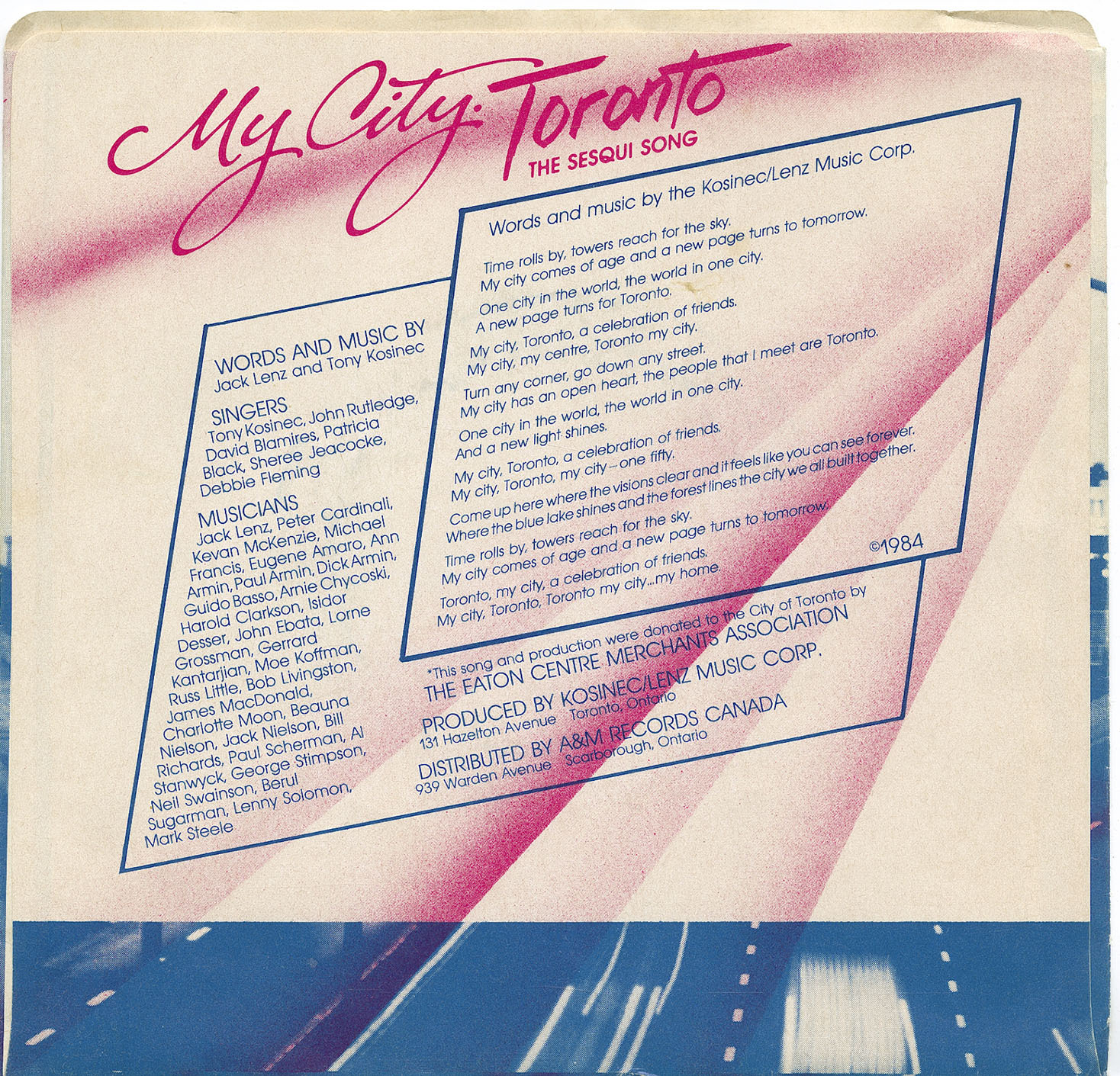 Kosinec, Tony - My City Toronto: The Sesqui Song (with Jack Lenz)