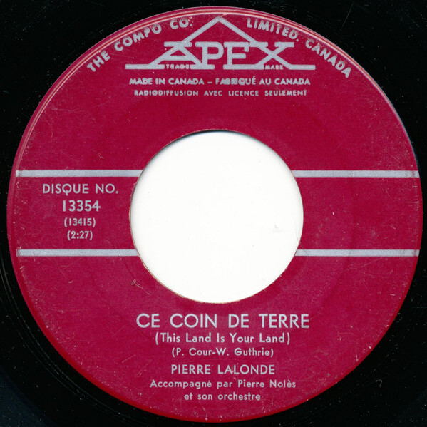Lalonde, Pierre - Grand'Mere b/w Ce Coin De Terre (This Land Is Your Land)