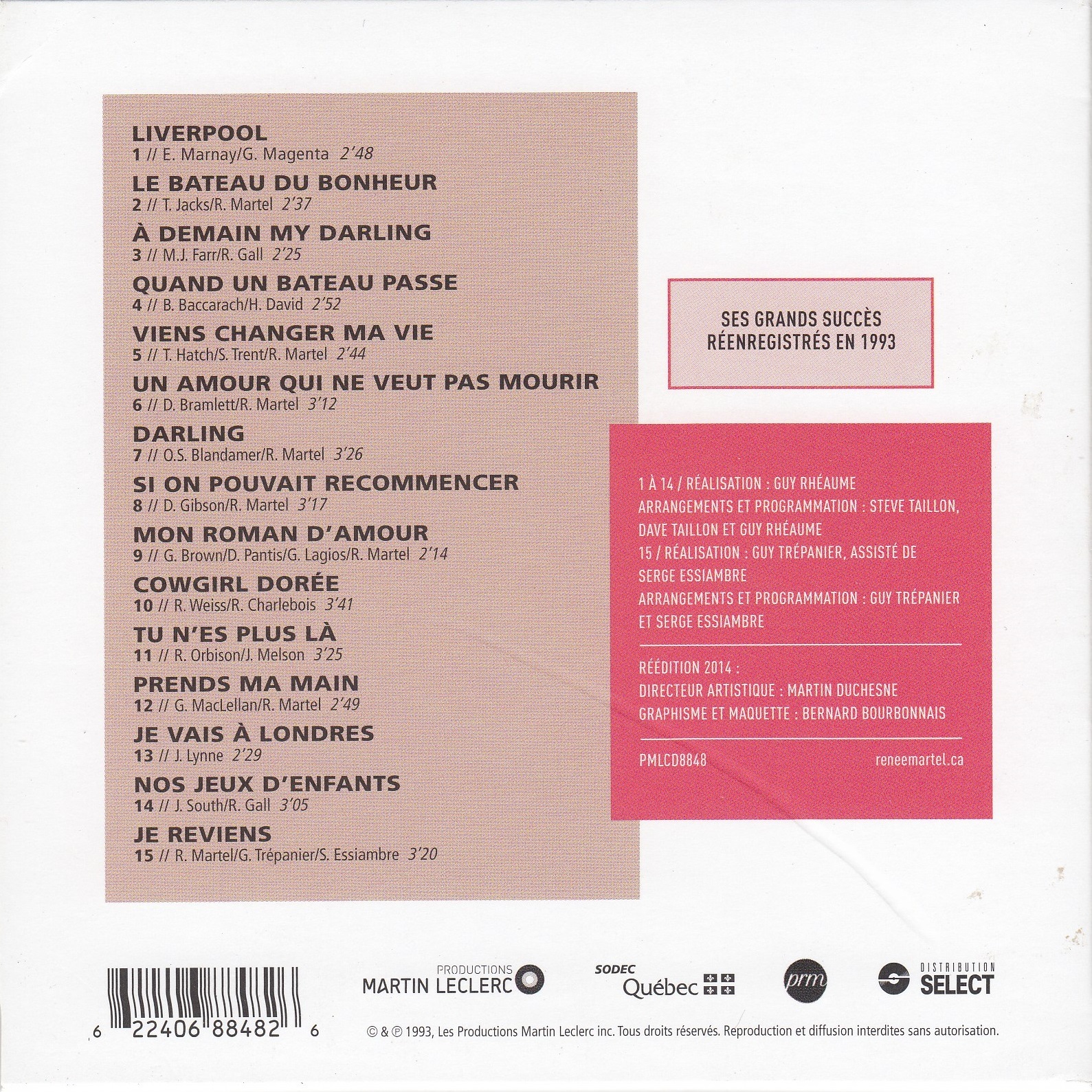 Les Grandes Chansons CD case back cover
