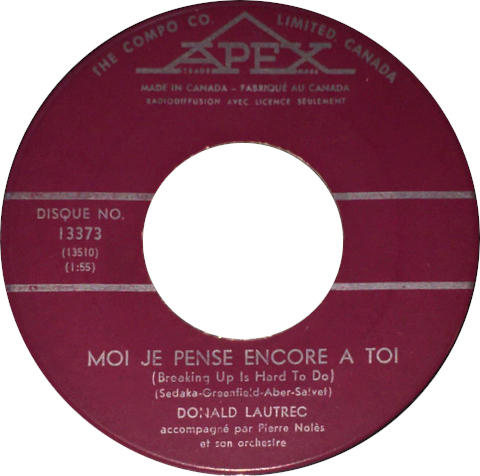 Moi Je Pense Encore à Toi (Breaking Up Is Hard To Do) b/w La Fille Qui Me Plaît (Hippy Hippy Shake)