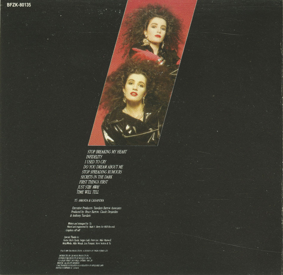 In 1988, Tú parted ways with RCA and signed with CBS Records, returning to the studio with Bruce Barrow for their sophomore effort, Secrets in the Dark, released in 1989. Though not as commercially prominent as their debut, the album featured the singles “I Used to Cry” and “Stop Breaking My Heart,” which received moderate airplay. Despite its polished sound and emotional maturity, the album would mark the end of their brief recording career.