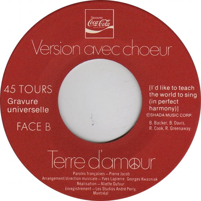 Terre D'Amour [I'd like to teach the world to sing (in perfect harmony)] (Avec Choeur) b/w Terre D'Amour (picture sleeve)