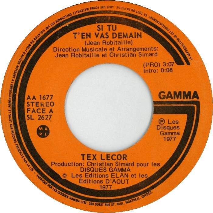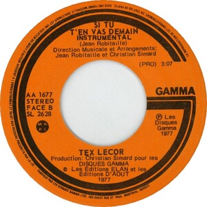 Lecor, Tex - Si Tu T'en Vas Demain b/w Si Tu T'en Vas Demain Instrumental