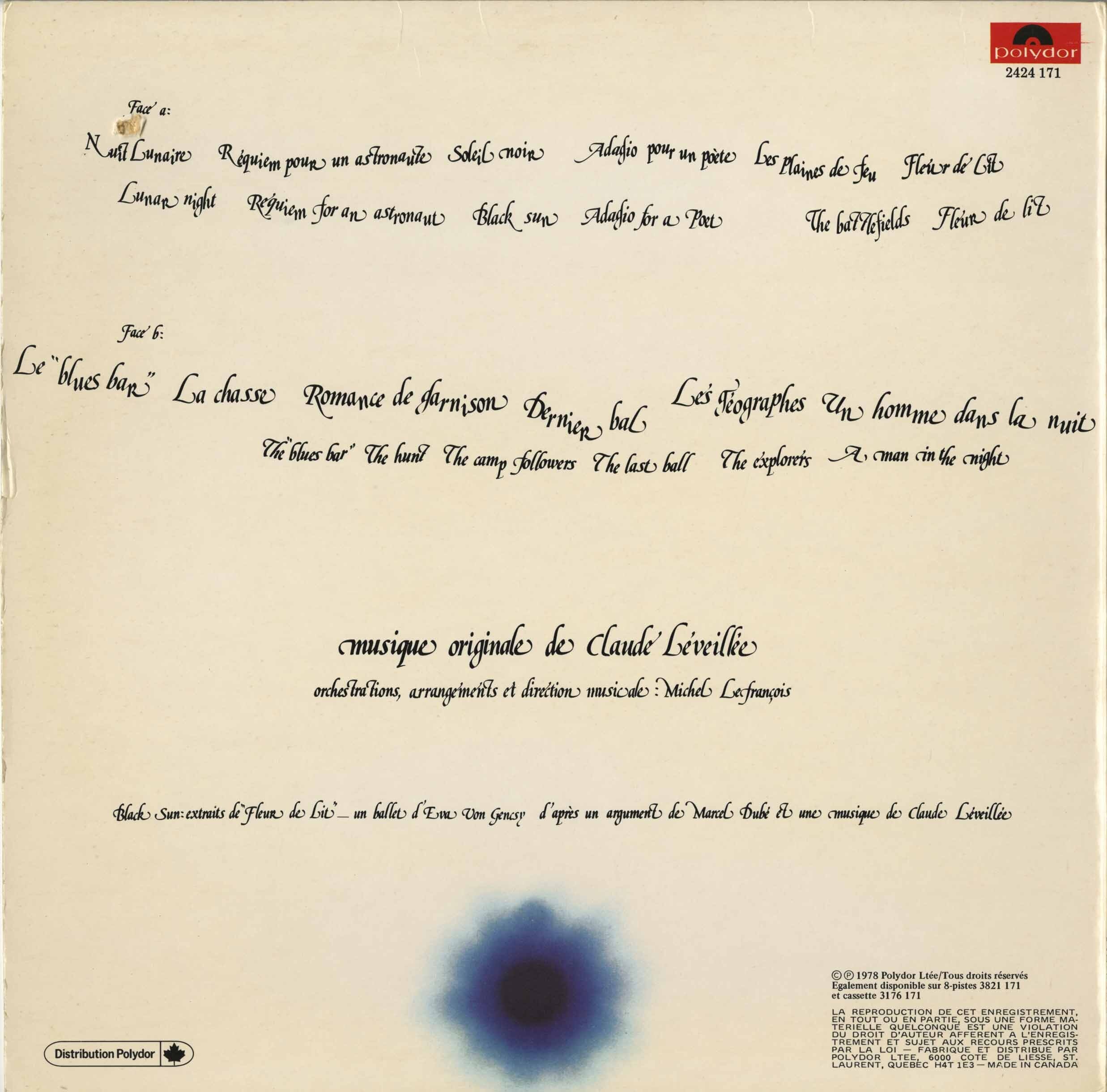 The album originated as music written for a ballet commissioned by choreographer Eva Von Gencsy for COJO, based on a dramatic concept by celebrated playwright Marcel Dubé. In a 1978 interview, Léveillée explained that the music had actually been recorded roughly two years earlier, then later edited, resequenced, and remixed before being issued as an LP. That background helps explain the album’s unusual structure and sense of narrative flow. Rather than functioning like a conventional song-based release, Black Sun unfolds like a staged suite translated to vinyl—its pieces moving through moments of grandeur, solitude, suspense, and reflection with the logic of a dramatic work rather than a pop album.
