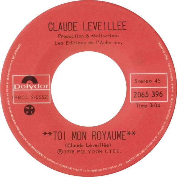 Léveillée, Claude - **Toi Mon Royaume** b/w Au Royaume De L'amour (Instrumental)