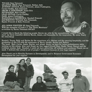 Sam Tutanuak: qilautik drum, acoustic guitar, background vocals