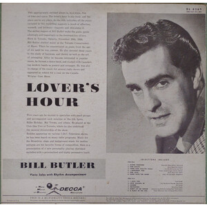 The skilled fingers of Bill Butler make the piano speak alluringly and lingeringly in the dialects understood by the heart. Born in Toronto, Ontario, November 23rd, 1927, Bill Butler studied music at the Toronto Conservatory of Music. Here he concentrated on piano, from the age of seven to the age of harmony and theory during the years of the study of harmony and theory until he was sixteen. He also devoted three years to arranging. After he became interested in all types of music, he formed a dance band, and worked with Canada’s top modern bands as pianist and arranger. He was also in charge of the score for several radio shows and appeared as soloist for a year on the Canadian Wrigley Gum Show.