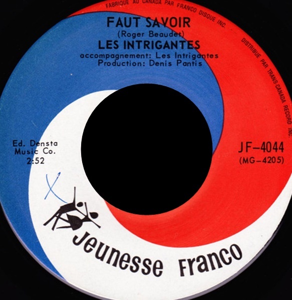 Les Intrigantes entered the recording world in 1965 with the single ‘Faut savoir’ b/w ‘Sans toi’ on the Jeunesse Franco label. Produced by Denis Pantis and written by Roger Beaudet, the record reflects the early garage-leaning chanson style common to Québec youth releases of the period. Beaudet—already active in the local music scene—would remain an important early contributor to the group’s repertoire.