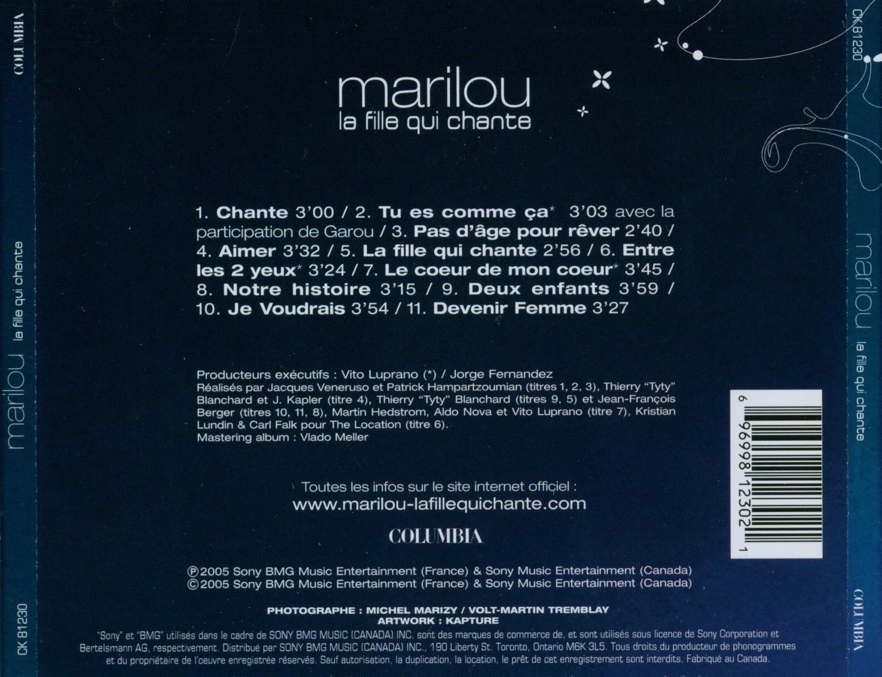 la fille qui chante CD case back cover