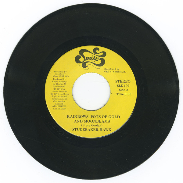 Emerging from the fertile London, Ontario club circuit in the mid-1970s, Studebaker Hawk represented a brief but ambitious chapter in the evolution of Canada’s melodic rock scene. The band first appeared on Smile Records in 1974 with the single “Rainbows, Pots of Gold and Moonbeams,” a lush, radio-friendly track produced by Ken Friesen and arranged by Paul Benton. Written and sung by Doug Varty, it carried an easy pop warmth balanced by the band’s guitar edge and rhythmic drive. The release was serviced widely to Ontario stations and drew promising early airplay, eventually charting in RPM during late summer 1975 and reaching No. 15 on Vancouver’s CKLG, according to Vancouver Signature Sounds.