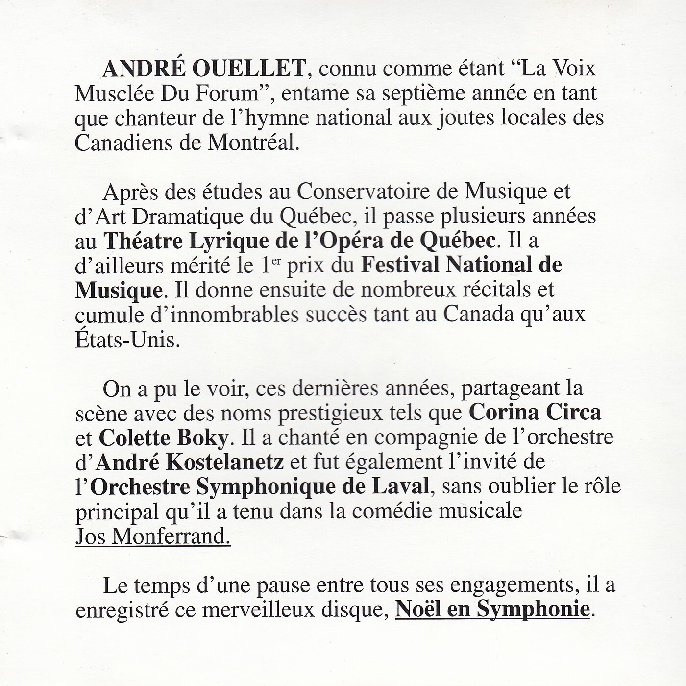 Noël en symphonie CD case back cover