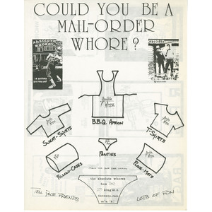 We’re the Absolute Whores. Thanks for buyin’ our record. When we made this our first 12” L.P. we decided we weren’t to be satisfied with glossy, big-budget type production standards. So we asked producer Jim Guess to record the band playing live, preserving all the energy and detail of the performance. But we also recognized the advantages of working in a studio environment where we could step into just a little engineer’s reality?