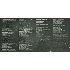A lifelong fascination with astronomy eventually brought him to Vancouver’s H.R. MacMillan Planetarium, where his skills as a musician intersected with new creative avenues. Beginning with visual-effects work, air-brush art, and scripting, McCaw became the planetarium’s de facto resident composer, handling music composition, narration, and full audio production for dozens of planetarium shows over a span of nearly twenty years. His first soundtrack LP, Journey Through the Galaxy, sold out two vinyl pressings and evolved into a cult favourite among collectors of ambient, space-rock, and electronic music. A revised and expanded edition—incorporating material from a sequel show—was later released on CD and digital formats. Additional scores for Electric Sky, Nightwatch, and Going to Extremes further established McCaw as a major creative voice in the dome-theatre field.