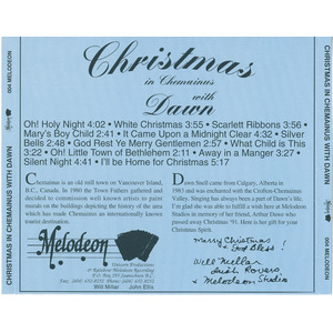 Dawn Snell came from Calgary, Alberta in 1983 and was enchanted with the Crofton-Chemainus Valley. Singing has always been a part of Dawn’s life. I’m glad she was able to fulfill a wish here at Melodeon Studios in memory of her friend, Arthur Dawe who passed away Christmas ’91. Here is her gift for your Christmas Spirit.