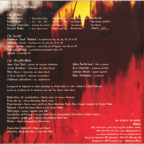 Stéphane “Dave” Bédard: trumpet (tracks ‘64’, ‘J’m’en Alle’, ‘Mashoo. Garnotte’, ‘Da Me’, ‘Imposer’, ‘Matchek Tayé’)