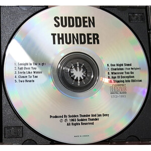 In 1993, Sudden Thunder released their self-titled album, recorded at Sonic Factory in Ottawa and engineered by Ian Derry. The album showcased a mature, confident sound, blending melodic hooks with heavier passages and longer compositions, including several tracks exceeding seven minutes in length. Though released independently and without major-label backing, the record stands as a solid document of Ottawa’s early-1990s metal underground and the post-Ivory Knight trajectory of its members.