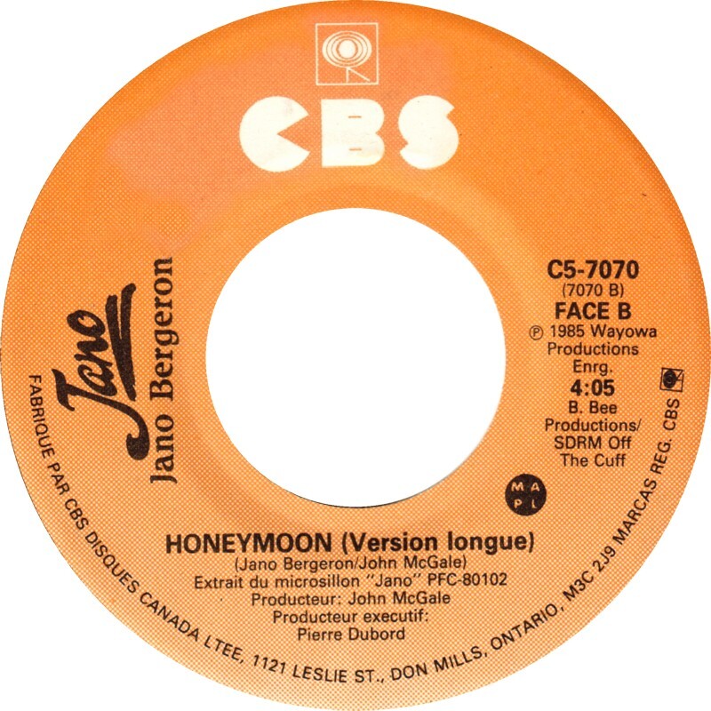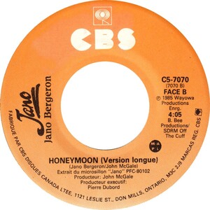 Bergeron, Jano - Honeymoon b/w Honeymoon (Version Longue) (picture sleeve)