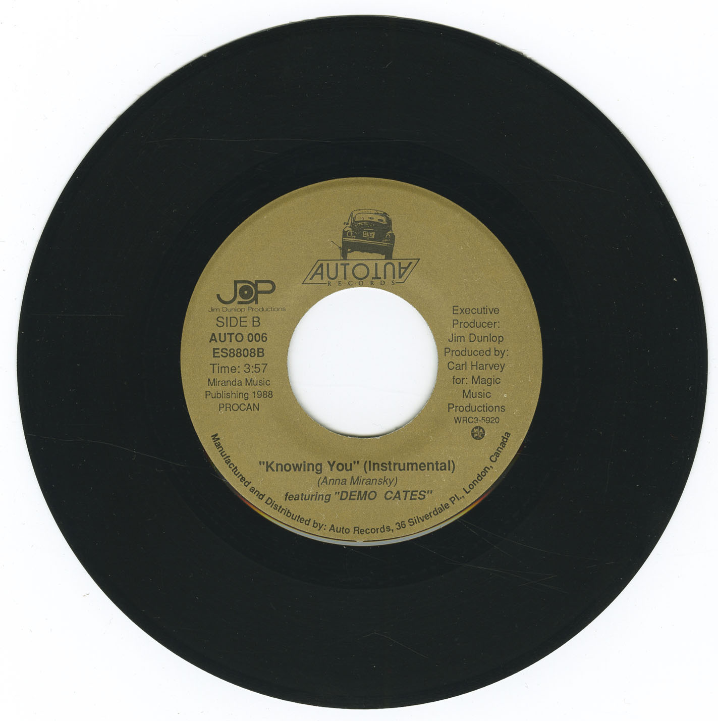Duncan’s recorded output also includes the 1988 Canadian 7-inch single “Knowing You,” issued on Auto Records. The release was produced by Carl Harvey, with Jim Dunlop credited as executive producer, and features a vocal version backed with an instrumental flip featuring saxophonist Demo Cates.