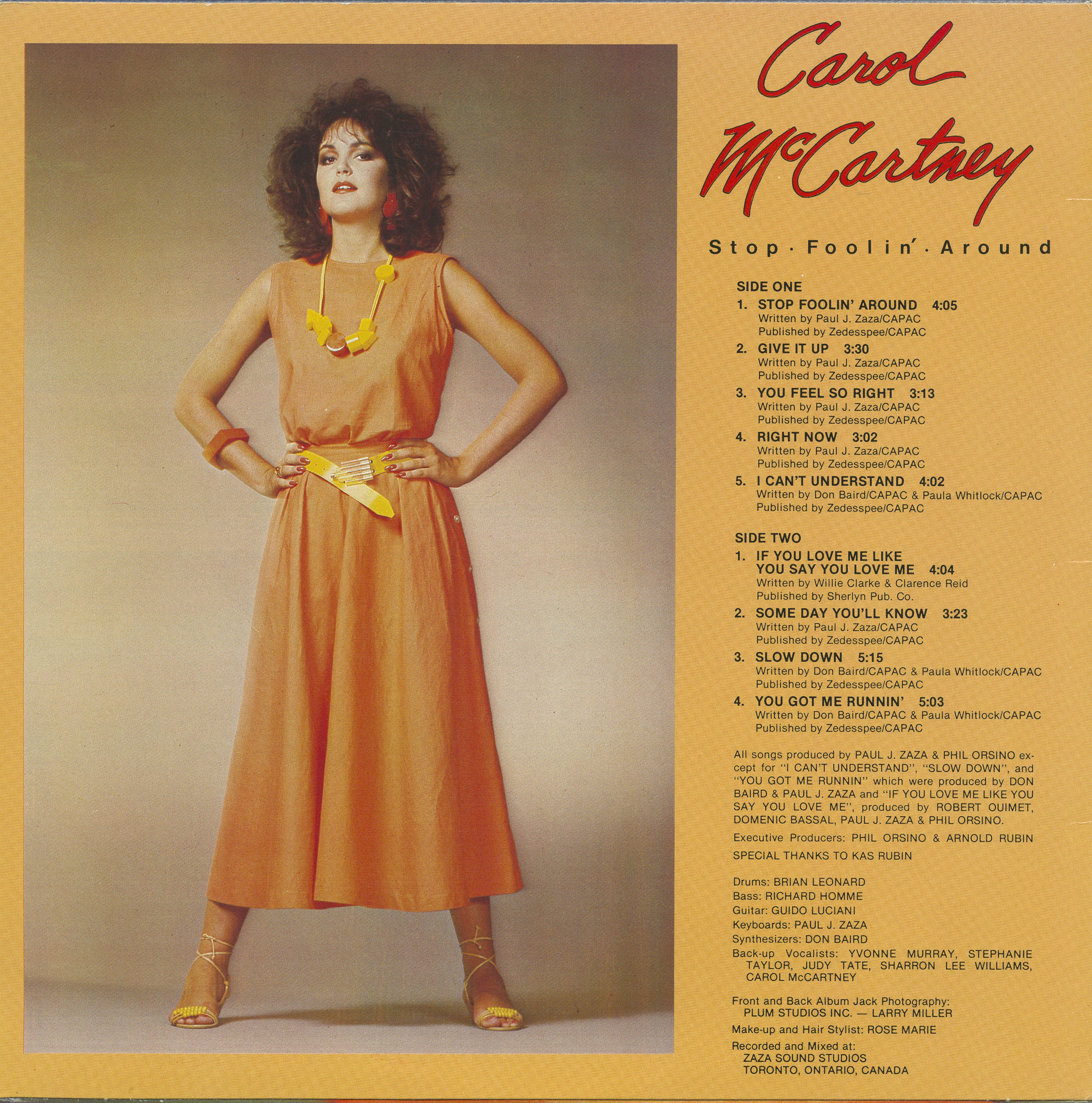 McCartney first reached national attention in 1978 when she was crowned Miss Toronto and subsequently placed fourth at the Miss Canada pageant, hosted by Jim Perry. Shortly thereafter, she entered the recording studio, releasing the LP Stop Foolin’ Around for Century Recording And Productions Inc. The album placed her in a polished Toronto studio context, working closely with composer and producer Paul J. Zaza and drawing connections to film and commercial music of the period. During the same era she also released club-oriented 12-inch singles, including the Hi‑NRG extended mix of ‘If You Love Me Like You Say You Love Me’, bridging pop, dance, and studio-driven production styles.