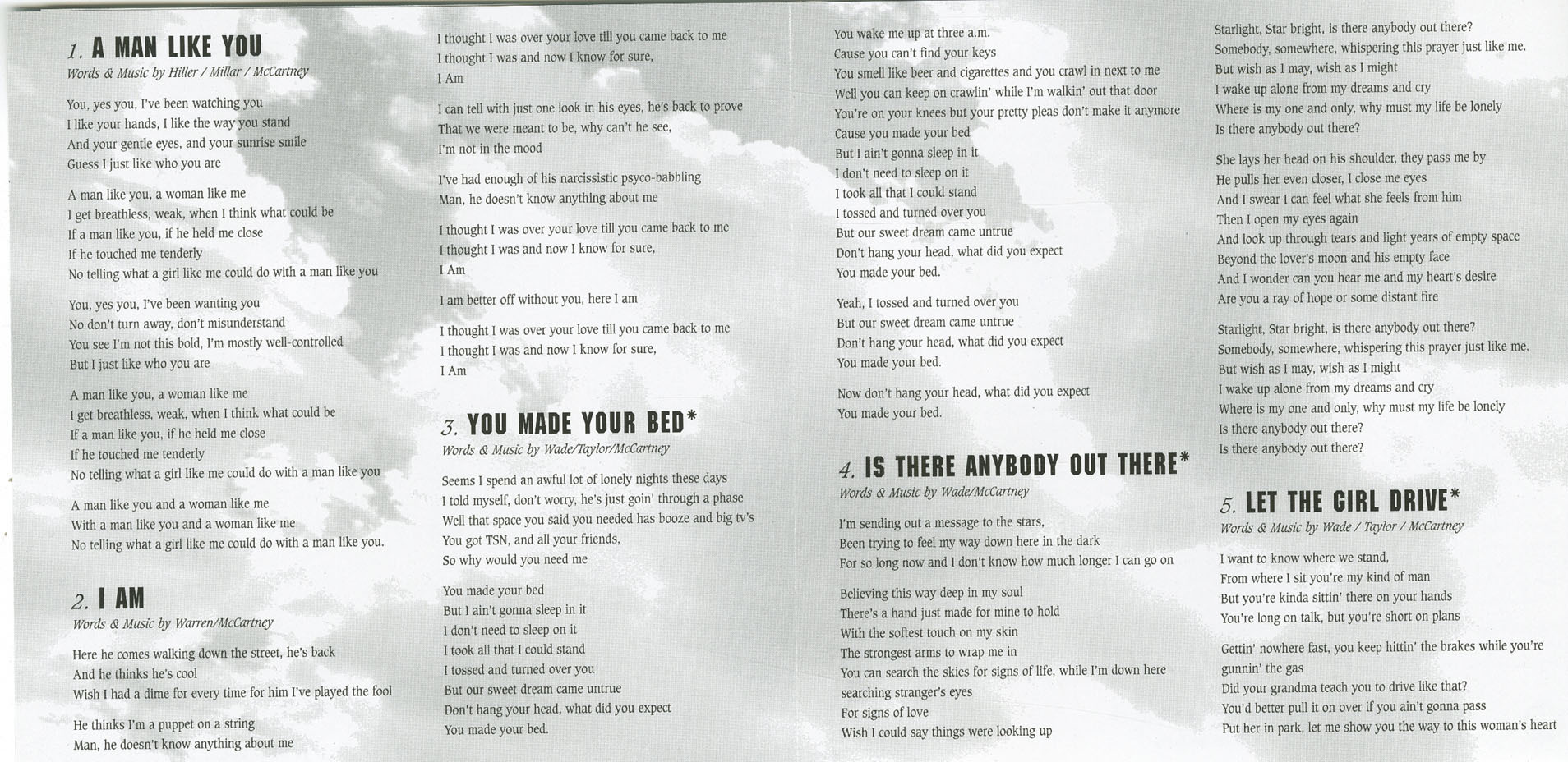 In the early 2000s, McCartney shifted focus toward songwriting and contemporary roots-based material, releasing the album Let The Girl Drive in 2002. The record reflected her interest in country‑pop and adult rock, emphasizing narrative songwriting and personal themes of independence and self-direction. During this period she also maintained a busy schedule of studio work, theatre roles, and live performances across Canada.