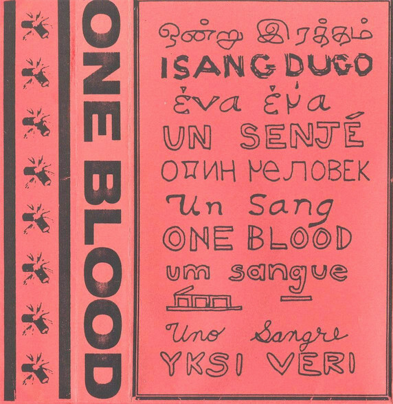 In 1991, One Blood released the LP Building a World of Prosperity With…The Efficiency of the Free Enterprise System on the New York–based label Gern Blandsten. The album opens with a spoken-word passage reflecting on the Canadian government’s treatment of First Nations people and the persistence of colonial violence and dehumanization, framing the record’s political intent before the music begins. Recorded at Peter Hudson Studios and Harlow Studios, the LP sharpened the band’s critique of capitalism, colonialism, nationalism, and state power, grounding its politics in contemporary global events. Issued with an extensive booklet containing lyrics, political statements, photographs, and illustrations, the album expanded the scope of the band’s work beyond earlier releases.