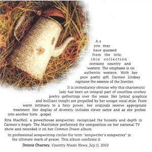 Rita MacNeil, a powerhouse songwriter, recognized the honesty and depth in Carmen's Angels. The Maritimer performed the composition on her national TV show and recorded it on her Common Dream album.