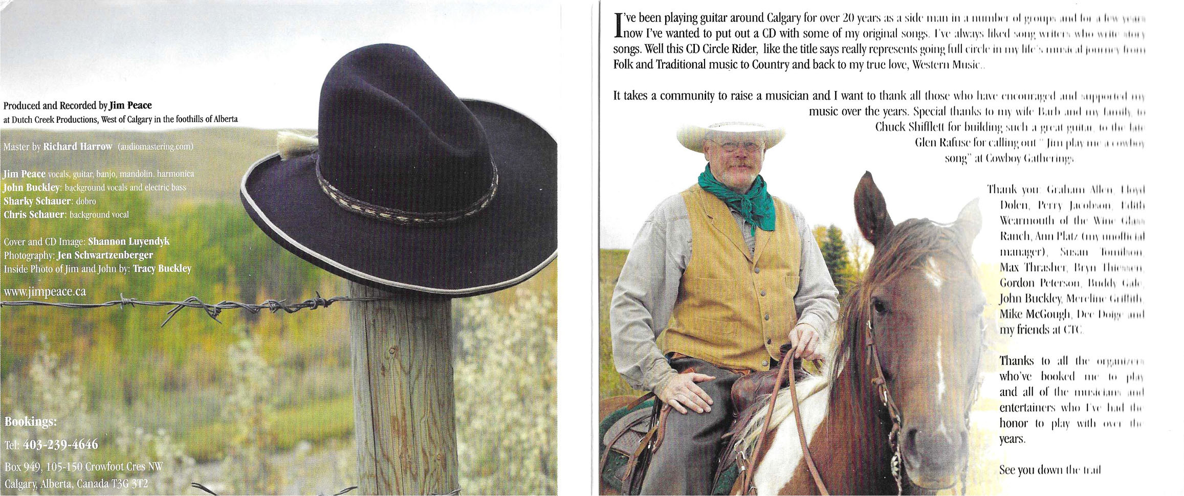 Produced and recorded by Jim Peace at Dutch Creek Productions, west of Calgary in the foothills of Alberta