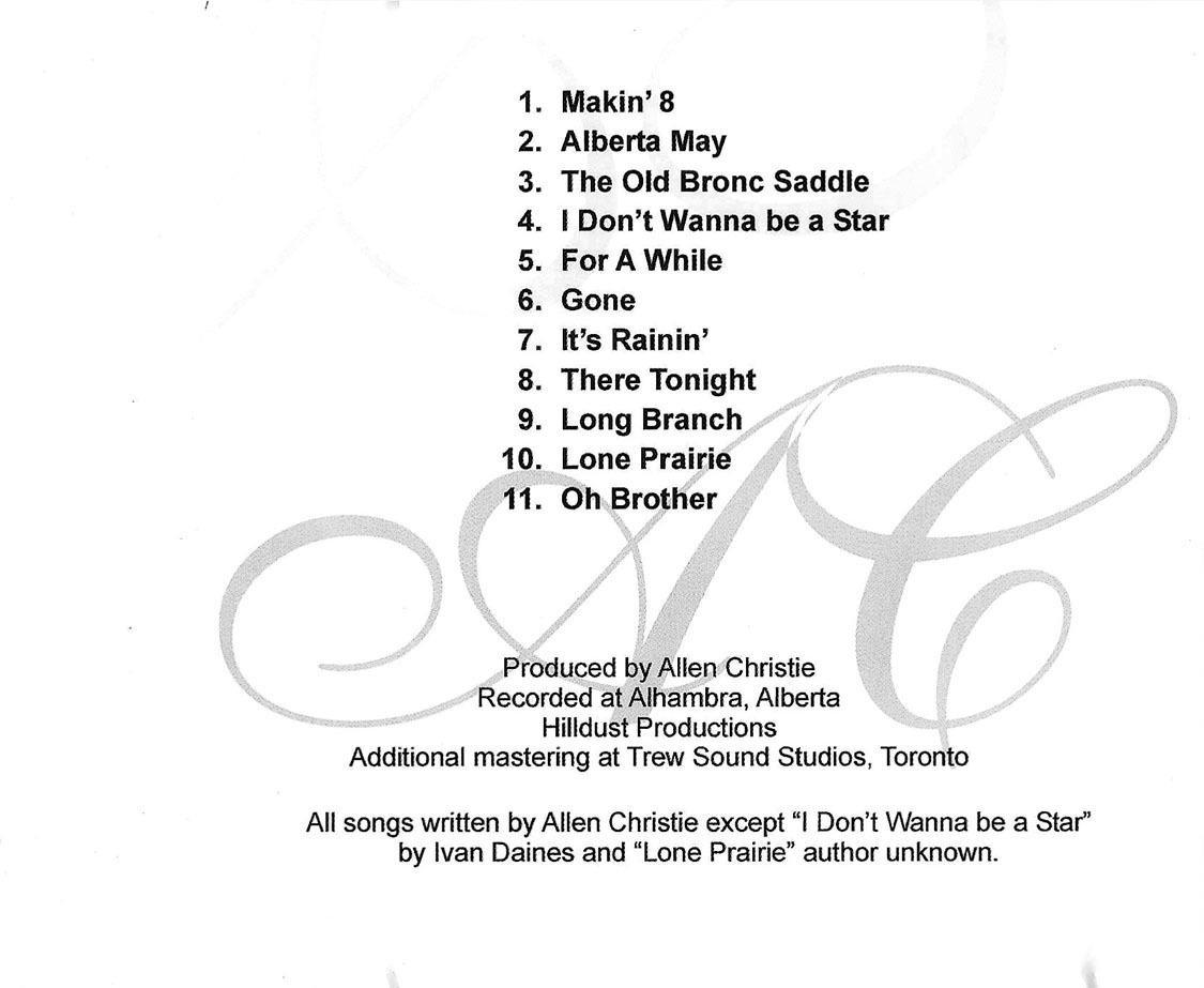 All songs written by Allen Christie