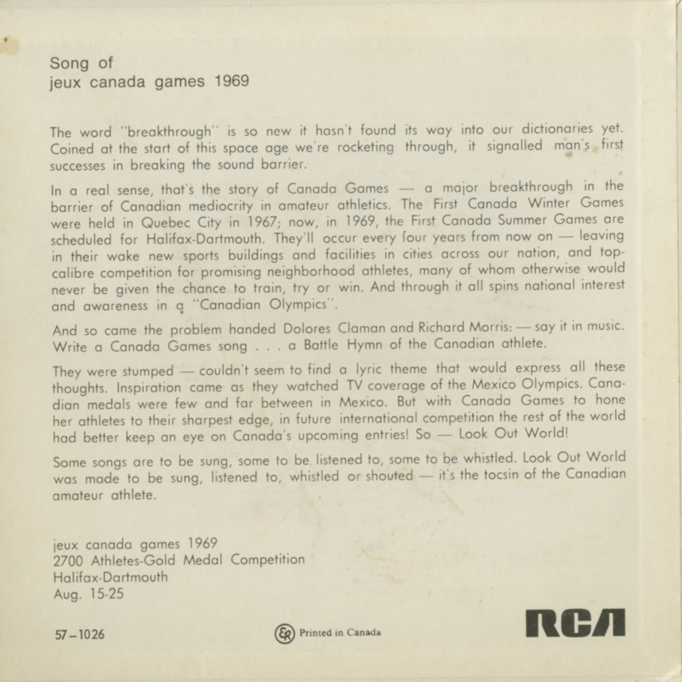 Look Out World: Song of jeux canada games 1969 (picture sleeve)