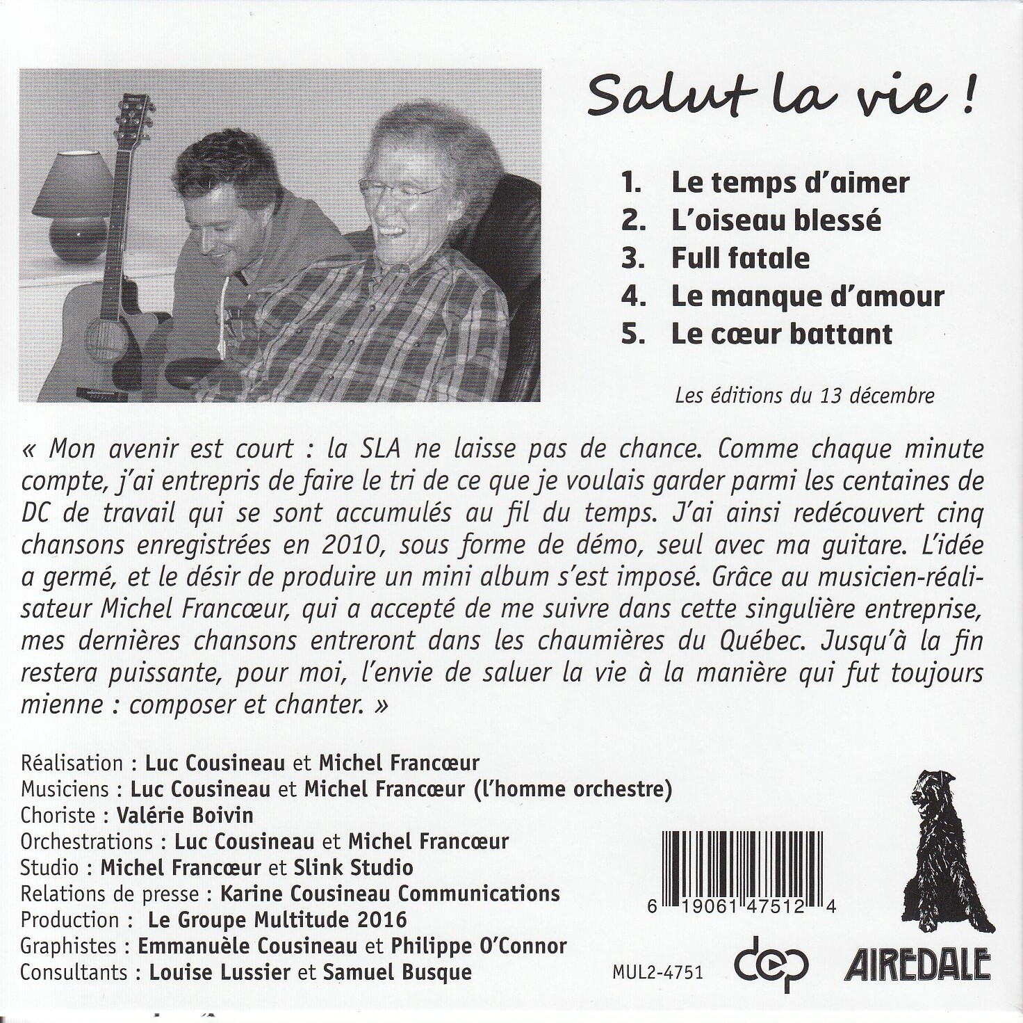 Luc Cousineau - Salut la vie! Back cover