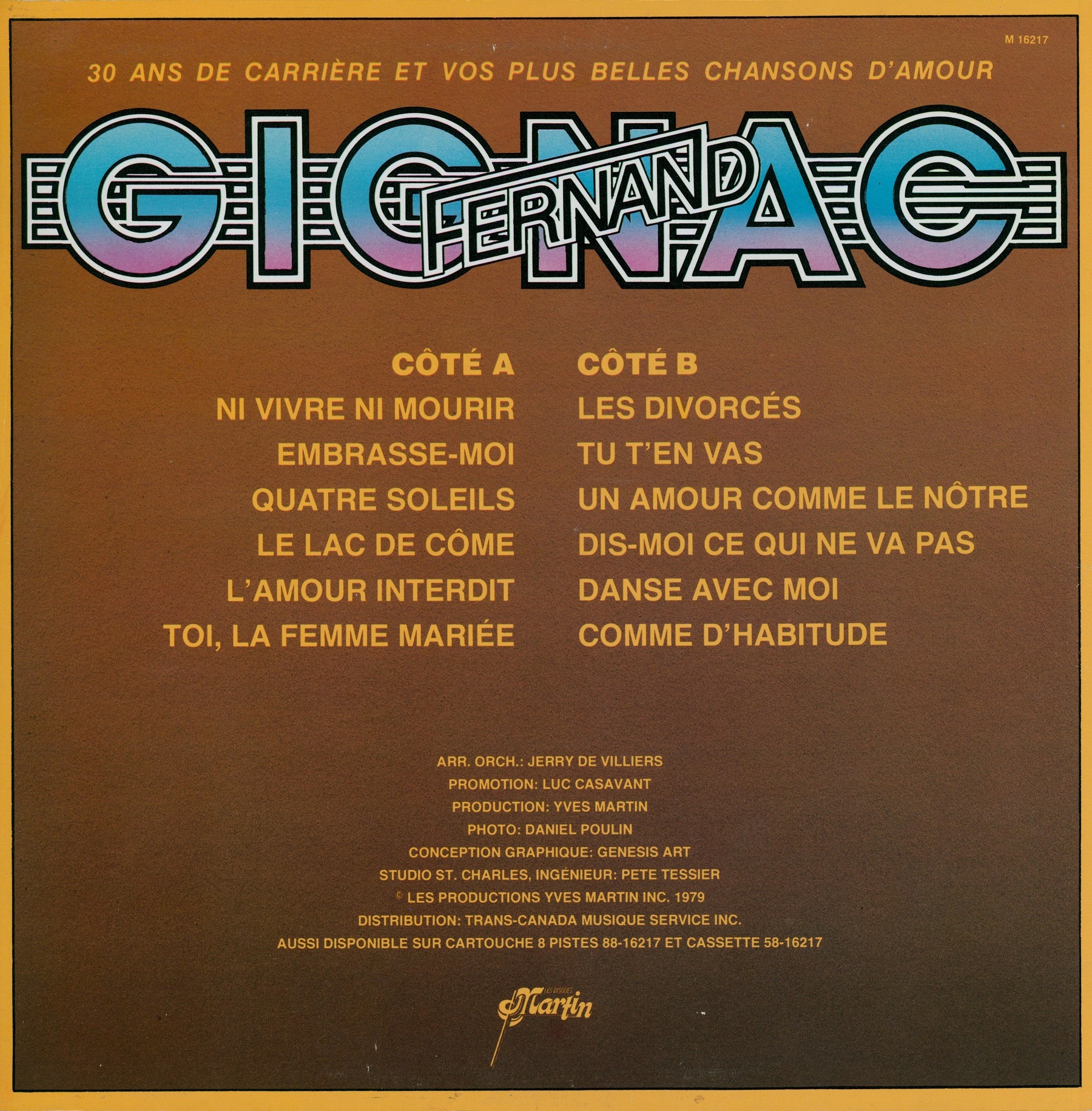 Fernand Gignac - 30 Ans De Carrière Et Vos Plus Belles Chansons D'Amour Back cover
