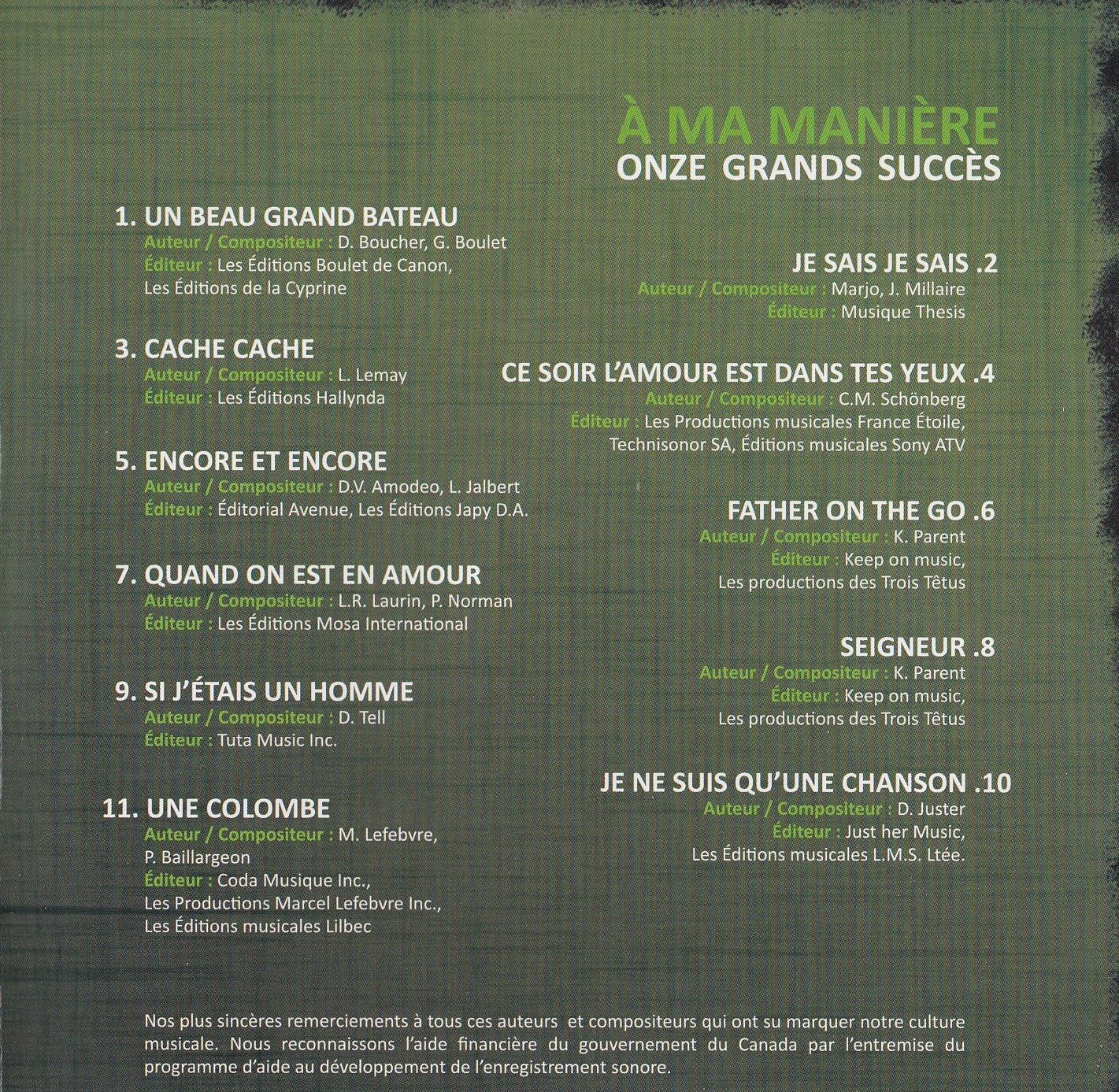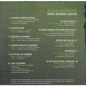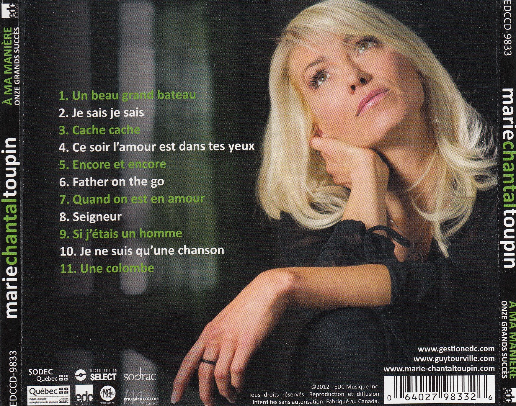Marie-Chantal Toupin - À Ma Manière - Onze Grands Succès Back cover