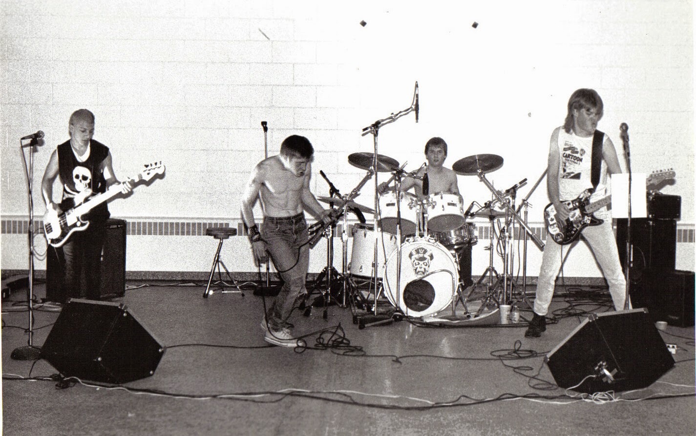 The band took shape in late 1985, sparked by conversations between vocalist Grant Forsythe and guitarist Ciaron Lewis, who were drawn to punk out of boredom, frustration, and a lack of creative outlets in Fredericton at the time. An early version of the group briefly included Pat Oanicia (later of S.C.U.M.) and Rich Ivey, but the lineup did not solidify until drummer Nick Oliver joined. After an improvised first show that required a temporary fill-in bassist, Rob Melvin was brought in, completing the band’s first stable lineup.