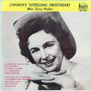 A follow-up album, “Terry Parker – The Yodeling Sweetheart” (this time correctly spelled “Yodeling”), was issued on the Rodeo/ Banff label. It contained such nuggets as Chime Bells, Mocking Bird, Wide Rolling Plains and The Yodeling Leprechaun – the latter also released as a single. Selections from both of her Rodeo/Banff albums were later re-issued on the label’s subsidiary, Canadian Cavalcade.