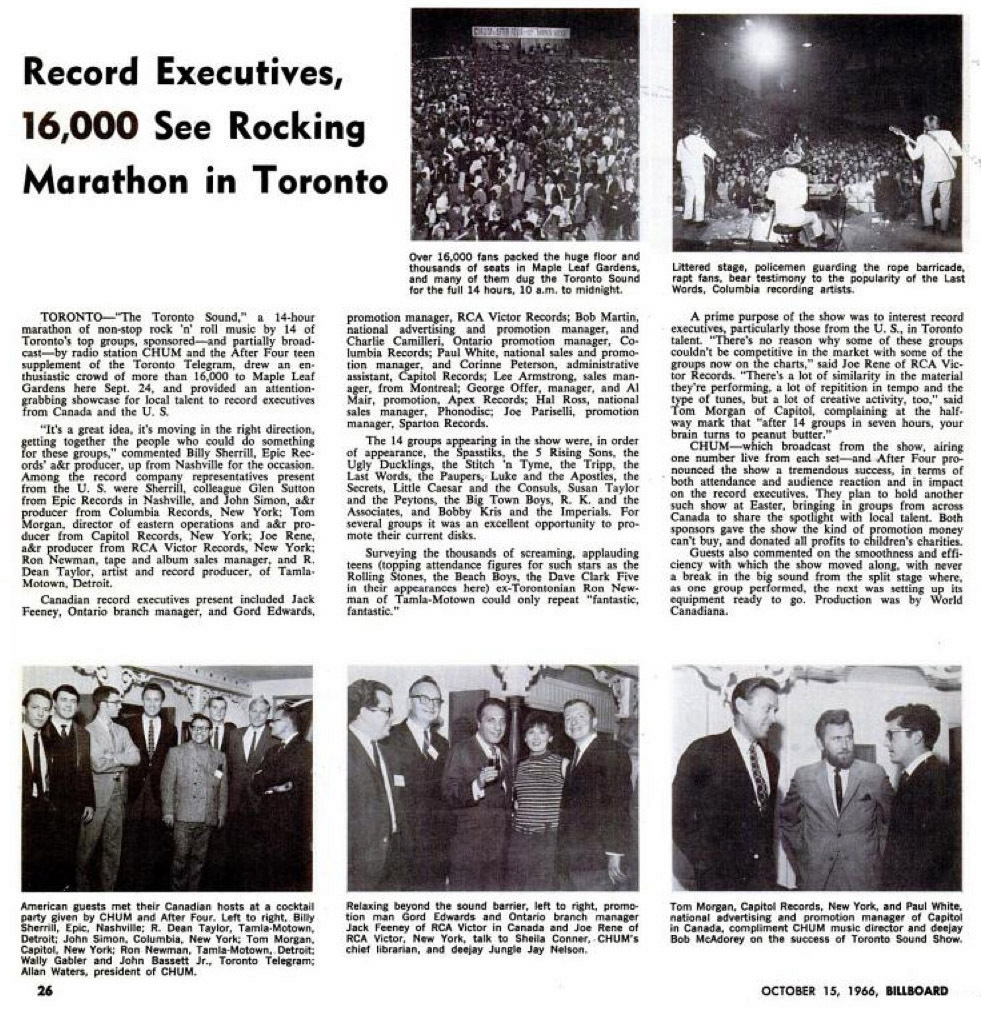 They played the Toronto Sound Show at Maple Leaf Gardens sponsored by CHUM in ’66 and toured with Terry Black in ’67.