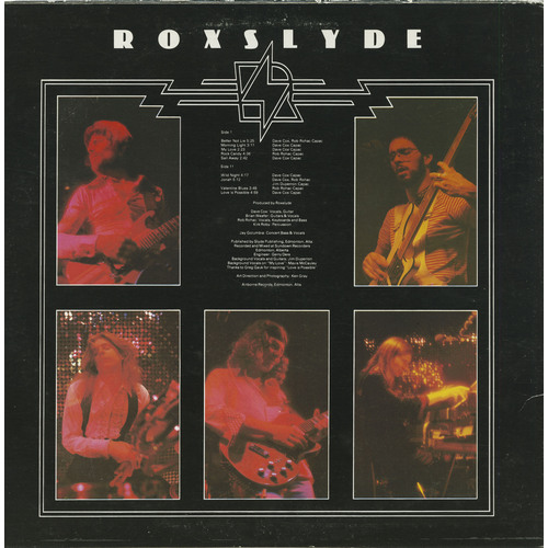 Roxslyde were an Edmonton, Alberta–based rock band active in the mid-to-late 1970s, centred around songwriter and guitarist Dave Cox and vocalist/keyboardist/bassist Rob Rohac. The group also included Brian Weaver (guitars, vocals), Kirk Roby (percussion), and Jay Golumbia (concert bass, vocals), and operated squarely within Edmonton’s independent recording and label ecosystem.