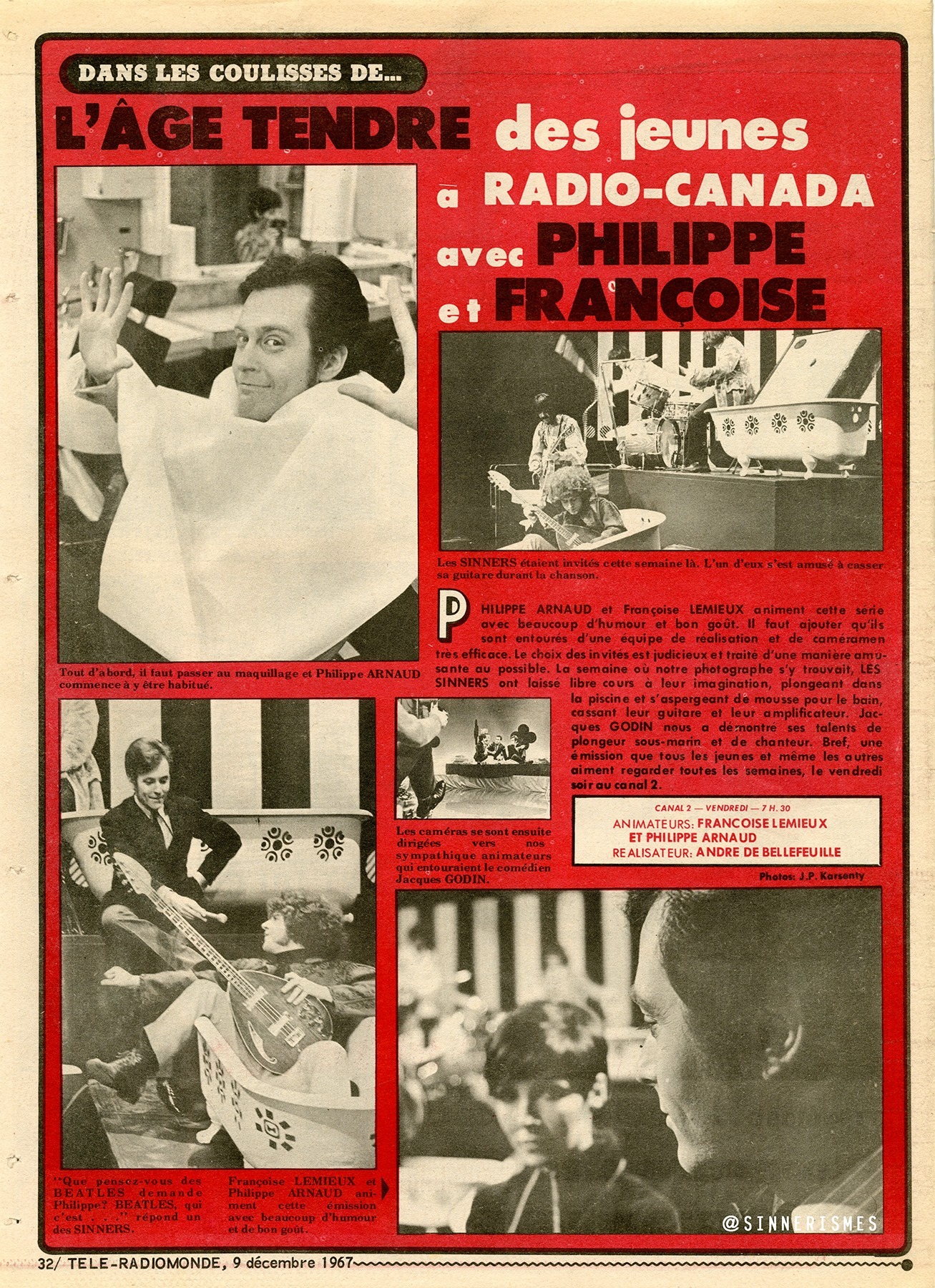 After Ernie Rock replaced Ricky Johnson on lead guitar, Les Sinners signed with Jupiter Records—the Canadian subsidiary of London Records, best known for releasing early Rolling Stones albums. Their follow-up LP Sinnerismes (note the restored double “n”), produced by Pierre Nolès, marked a major step forward in sound and confidence. The record abandoned English almost entirely in favour of French lyrics and yielded the band’s biggest hit: a meticulous and wildly popular French-language version of the Beatles’ “Penny Lane,” with lyrics by Stéphane Venne. Its fidelity and charm were so striking that many radio listeners mistook it for the original. Other standouts included “Les Disc-Jockeys” and the tongue-in-cheek psychedelic romp “L.S.D. Ha! Ha!” Les Sinners became a sensation, their mischievous television antics—most famously bringing a live baby elephant onto the set of Jeunesse d’aujourd’hui—cementing their reputation as the enfants terribles of Québec rock.
