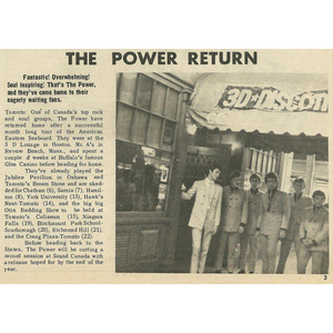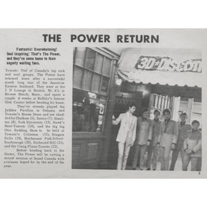 During its first year, the band established a solid fan base on southern Ontario’s dance circuit, billed either as E. G. Smith & The Power or as Grant Smith & The Power. Shortly after a June 27, 1967 show at the Broom and Stone in Scarborough, a Toronto suburb, Charlie Miller left the band. With the lineup reduced to a single drummer, Wayne Stone cut his teeth in the solo drummer chair at a week-long summer resort gig in Grand Bend, Ontario, after which the band headed to the United States, spending 1967’s famous “Summer of Love” working clubs in the Boston area and in upstate New York. On the band’s return to Toronto in early September, Jim Pauley left the band and was replaced by guitarist Jon Palma.