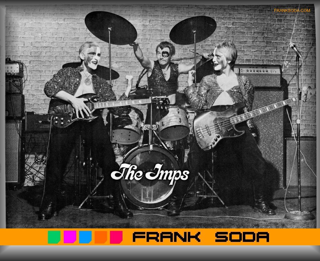 Between 1975 and 1976, the Imps began to gain a cult following. Frank began writing songs, and T.V. People soon became an anthem in the local Toronto clubs. This marked the beginning of the exploding head gear. Since the song was about getting "screwed up" or brainwashed by watching too much television, Frank decided to illustrate this by exploding a t.v. on his head. In Detroit they got the same pyro equipment that Kiss and Truimph were using. Soon the Imps live shows were known for high energy with outrageous antics. He soon added other exploding head gear such as the Moon Man, Smoking Pig, and took the audiences' picture with a gigantic camera on his head in the song Take my Picture Please.