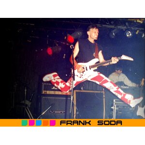 In 1985, Terry Watkinson (Max Webster) joined the band on keyboards and vocals. Terry and Frank exchanged ideas and planned on writing together. Met his wife Joyce. Frank and Joyce were married and had their first child in 1986. Terry had also recently had another child so they decided to take time off touring, and formed a duo. Terry programmed the drums, and played keyboards and left handed bass. They played songs from Max Webster that Terry wrote and sang, as well as Soda songs, and some fun cover tunes. Frank had to put everything on hold in 1987 when his father became ill and flew back to Vancouver. At this time, he decided to move back to Vancouver to help the family out. Later, he set up a cross-Canada tour with a new all female band, "The Pop Tarts". Tessa Kimmel (bass), Tiz (drums), and Cathy (guitar). Once in Vancouver the girls decided to move back to Toronto. By 1989, he teamed up with some of Vancouver's top musicians. Marc LaFrance, drums, vocals), and Mick Della-Vie, (bass,keyboards,vocals), have played or recorded with such artists as Loverboy, Aerosmith, Randy Bachman, Bryan Adams and Trooper. With this new lineup, he put his original show back on the road and toured to Toronto playing festivals with Colin James, Goddo, and Frozen Ghost. Back in Vancouver they played local clubs and opened for such acts as B.T.O., Glass Tiger, etc. Frank set up a basement studio in 1990, learning more about sequencing from friends Cory Lavigne and Terry Robotham. Having recently had his second child, Frank took time off to write. Jammed and played local clubs in the Vancouver area.