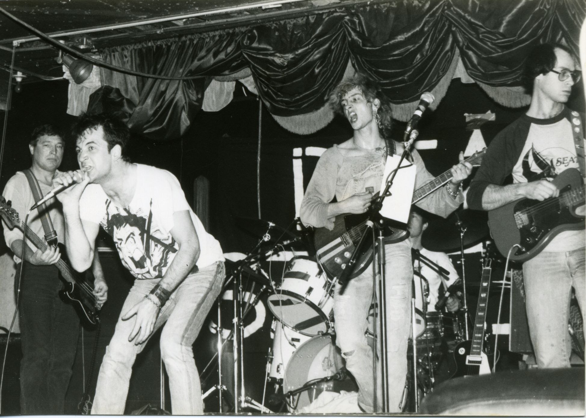 The Spores formed in Vancouver in 1983 and became part of the city’s second wave of punk. The group centered on guitarist Wayne Abstain, guitarist Sandy Beach, drummer Boom Boom Benson, bassist Johnny von Klutz, and vocalist Danny Shimanny. From the start they combined straightforward punk songwriting with a sense of humour and stage presentation that made them stand out from other local bands, but their music was always the core of the project.