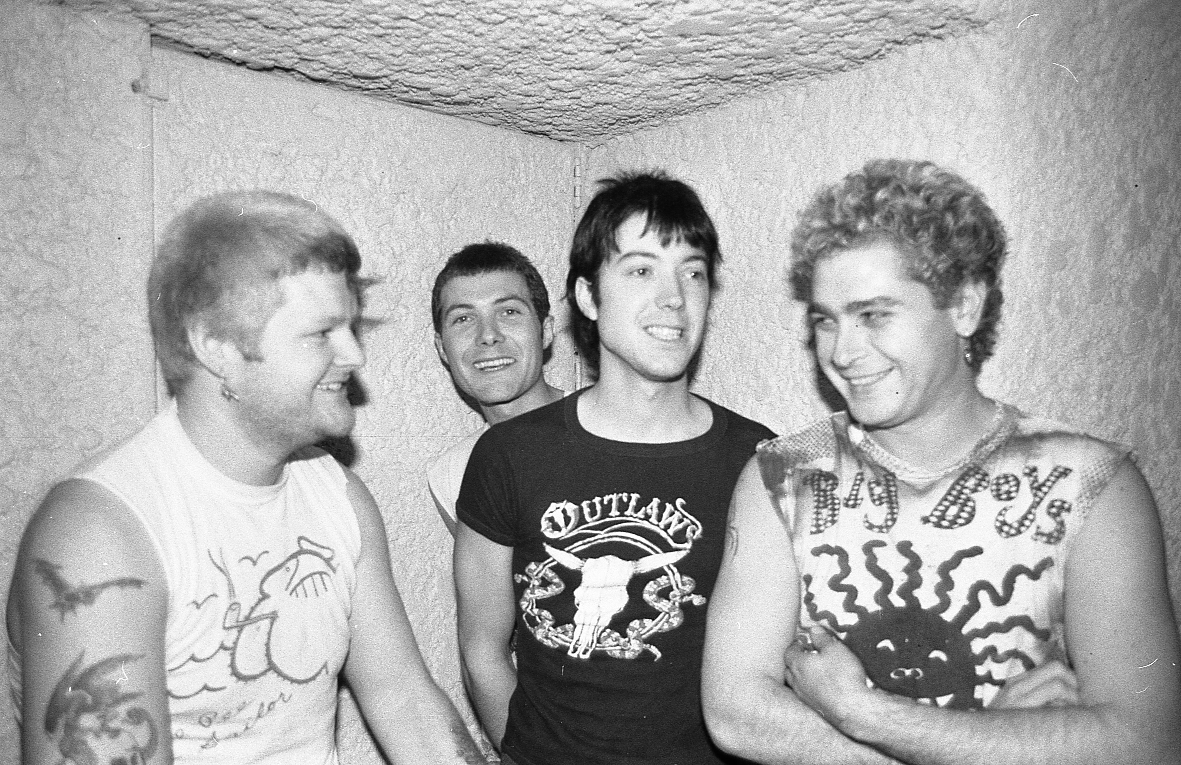 The band began as a two-piece formed by brothers Bill and Kelly Jackson, writing fast, blunt songs before expanding into a full lineup with the addition of vocalist Dave McCombe (soon known as Dik Savage) and bassist Mark Langtry, who adopted a revolving cast of aliases including Sikbee, Sicby, Terror, and Mark Stretch. From the outset, Stretch Marks combined the velocity and austerity of early American hardcore with a distinctly Canadian sensibility shaped by Cold War anxiety, nuclear dread, and an intolerance for posturing—inside punk as much as outside it. Their music was confrontational, but never humourless; absurdity, satire, and self-awareness were integral to their identity.