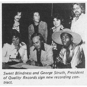 The Canadian soul/disco band Sweet Blindness had its roots in a local Toronto bar band named The Statlers (not to be confused with the US soul group) founded by Bobbi Dupont and Phil Smith in 1967. In 1969 a few members of The Statlers jammed with another local bar band named The Jax and out of this session emerged a new unit named Toronto's Sweet Blindness. They dropped the Toronto part of the name after American guitarist Curtis Lee joined them in 1974. Between '74 and '77 they released a number of singles and 2 LPs: "Sweet Blindness" ("Music You Can Ride On" in USA) and "Energize". They broke up soon after their second album.