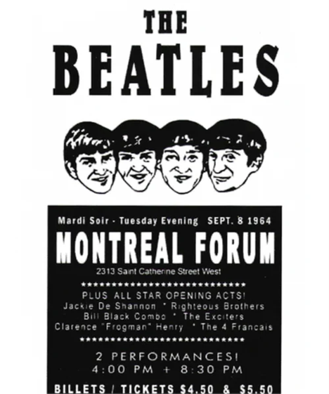In 1964, Les 4 Français achieved a historic milestone when they became the only Canadian band ever to open for The Beatles, performing the opening set at the Montréal Forum on September 8, 1964, in front of 21,000 fans. The Beatles only visited Montréal once, and Les 4 Français were part of that legendary night. Later that same year, on October 29, 1964, they also opened for The Dave Clark Five at the Forum, further cementing their role in the British Invasion era.