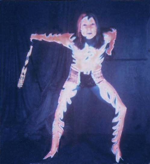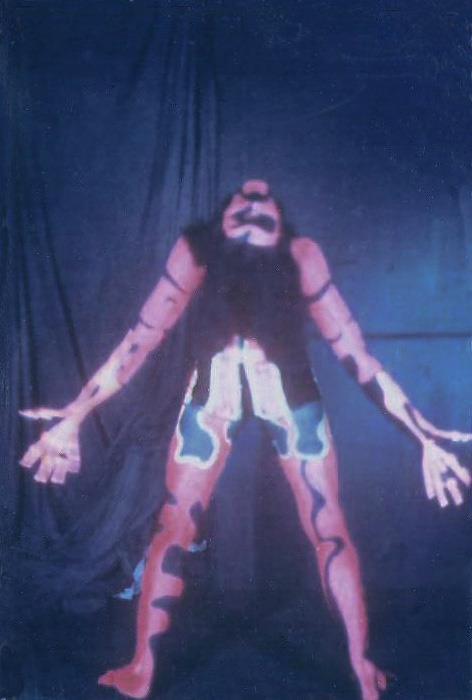 Since the music was fairly simple, I (Paul) would keep the music going along with our rhythm player (Steve) and the vocalist (Al) standing in on the drums. Our bass player and drummer would throw off their robes to expose the full body paint, run through the audience with mikes in hand, repeating parts of the Zappa tune as the sound man added special effects to the voices. We gained great popularity with the drug crowd for some reason!!To enhance the stage show even more, we started making our own stage outfits. Steve and Nick’s mother was a seamstress and made costumes for the Hamilton Theatre Company. Steve learned how to make patterns from his mother and imagination was the limit.