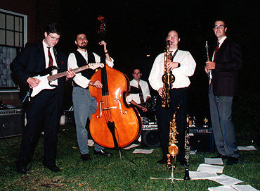 They took out an ad in a local newspaper looking for a saxophone player and after a few false starts flutist Devon Rowe joined the band. Yeah, that’s right flutist… Devon’s solos, ranging from quiet lilts to ear busting trills were the ingredient the trio didn’t know it was looking for. After a few practices Devon brought along a fellow graduate student from the earth sciences department at the University of Alberta, saxophonist Mark “Skids” Skidmore. The addition of an accomplished sax player – what the boys were originally looking for - completed the set. Skids had fine chops, an easy going manner and fit right in – the trio was now a quintet.