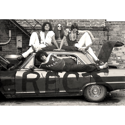 The photo was taken just before taking the "Erect Mobile" to the wrecking yard. The police pulled us over and told us we had to take it off the road. That was the inspiration for the song "We Are Police".