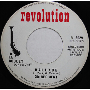 After a little over a year of existence, here they are renamed Le 25e Régiment and signed with Apex, or more exactly LA Cie Compo, based in Lachine. Their first single naturally includes a version of the Beatles "Lucie under a sky of diamonds". This one is twinned with an adaptation of "My Mammy", standard of Al Jolson popularized in 1928. But it is with a title of Fireballs "Bottle Of Wine" become "It is a good sign" that they imposed on the charts at the beginning of 1968, happily sharing this success with the competing version of Chantal Renaud.