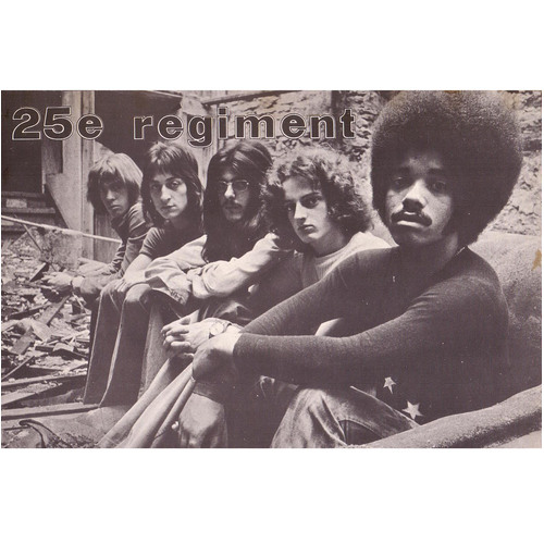 The Regiment now has in its ranks a new guitarist-singer who succeeds Guy Limoges, in the person of Karol Dicaire, until then a member of Les Astérix. We are in the summer of 1968 and the group which has the wind in its sails joins l'Agence P.G., directed by Pierre Gravel and which sees to the careers of a large number of groups, from les Topazes et les Mousses to Intrigantes and Les Sinners, including Les Gants Blancs and Les Hou-Lops. While they rush into new musical avenues of psychedelia and other underground trends on stage, their record production is moving in other directions. We can thus hear the 25th Regiment attacking a song by La Bolduc "Le petit bonhomme avec le nez pointu" or by La famille Soucy with "Les fraises et les ramboises" renamed "Les fraises à bicyclette".
